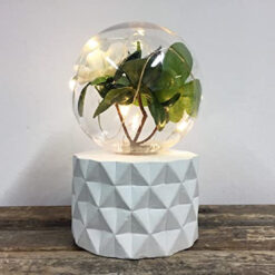 A set of two Luxa’s Plant Lamps, delightfully cute miniature terrarium’s with a sprig of artificial flowers and leaves housed in a light bulb and set into a plaster base. The plants are illuminated by a tiny string of 5 warm white LEDs which are powered by three AAA batteries (not supplied).